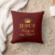 Elegante bordeauxrode JESUS KING OF MY HEART Sierkussen, met een goudkleurige kruin en faux gold typografie in het midden, in een diep rode krans. Op de achtergrond staat de tekst King of Kings in een subtiel betegeld patroon, dat op de achterkant doorloopt. Dit zou een mooie aanvulling op uw kerstinterieur zijn, en een prachtig, stijlvol cadeau gedurende het hele jaar.