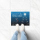 Christmas Party Tree Blue Sky Shiny Stars Rustic Doormat. Unique, beautiful, stylish design. Easy to be personalized. Font style, size and colors can be changed. Matching items are available.