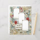 This design features a lush, vintage-inspired collage background of muted blues, creams, and holiday greens, overlaid with sheet music and delicate distressed textures. The focal point is a beautiful arrangement of poinsettias (in classic red and creamy white), holly berries, snow-dusted eucalyptus-style foliage, and sparkling ornaments.