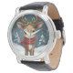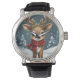christmas reinder engraved modern leather elegant horloge