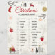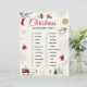 Festive Christmas scavenger hunt checklist artwork with a clean white background and charming holiday illustrations. Designed with elegant red cursive typography, surrounded by cozy winter elements like evergreen branches, snowflakes, houses, trees, a snowman, and warm holiday details. The balanced layout creates a joyful seasonal atmosphere perfect for family-friendly celebrations. All text and images are fully editable, allowing easy changes to match any style or preference.