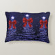 Christmas Sparkling Trees Navy Blue Faux Red Bow Accent Kussen