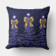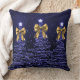 Christmas Sparkling Trees Navy Faux Gold Bow Kussen