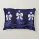 Christmas Sparkling Trees Navy Faux Silver Bow Accent Kussen