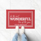 Beautiful Christmas design for your home's door mat with the phrase “IT'S THE WONDERFUL TIME OF THE YEAR” with Christmas motifs and customizable color so that your home looks wonderful this Christmas season, the design is personalized with your family's name.