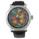 Chromatic Flight" - Stained Glass Butterfly Horloge