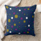 Een patroon van cirkels van verschillende grootte in goud, wit, paarse en groen is verspreid over een donkerblauwe achtergrond. De cirkels zijn gelijkmatig verdeeld en variëren in diameter.