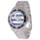 Een zilverchroomvormig vormig vormgeving op een blauw marinescheertje. Een modern nautisch geschenk. Gebruik de link "Vraag deze ontwerper" om contact met ons op te nemen met uw speciale ontwerpverzoeken of voor hulp bij uw aanpassingsbehoeften.