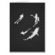 Een zilverchroomachtig als haaien en duikapparaat scène op een zwarte koolstofvezel achtergronddecor. Een modern, modern nautisch geschenk.