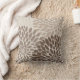 Een zachte crèmeachtergrond met vier grafische chrysanten van licht tot donker. Een elegant gooit kussen die elk decor aanvullen.