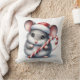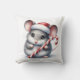 Een schattige pluizige muis draagt een kerstmuts en houdt een grote gestreepte snoepstok vast