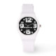 Leuke zwarte achtergrond met witte chunky nummers, dit gepersonaliseerde horloge is opvallend en gemakkelijk te lezen. de 3, 6, 9 en 12 zijn groter dan de andere nummers. Schattig, functioneel en leuk!