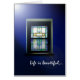 De foto op deze kaart is genomen op de First United Methodist Church, 340 Main Street, Genève, New York USA. Er zijn twee grote gekleurde glazen ramen in het halfcirkelvormige reservaat. Een raam heet liefdevol "Het Goede Venster van Shepherd" en de andere schilderijen "Laat de Kleine Kinderen me binnenkomen." Er zijn nog veel meer ramen in het actieve kerkgebouw - in lounges, Sunday School rooms, kantoren en bursalen. Veel mensen waren gewijd aan de nagedachtenis van geliefden en voortijdige kerkleiders. Het gebouw werd 1912-1914 gebouwd. De vensters werden geïnstalleerd rond 1913, en werden gemaakt door Pike Glas in lood Studio in Rochester. Foto en design door Kelly Stowell, 2008, www.zazzle.com/ umchurchcopyright 2008.