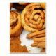 kaneel in poedervorm en stok met freah gebakken minikaneelrollen op een wit bord