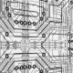 Dit is een illustratie van een printplaat in zwart, wit en zilver. Geweldig voor de persoon die geïnteresseerd is in elektronica of technologie.