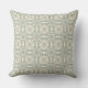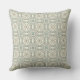 Dit werpt kussen bevat een blauw en bruin cirkelpatroon op een crèmeachtergrond.