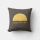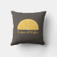 Een bruin kussen met een gele citroen halve plak en aanpasbare tekst. Het kan worden gebruikt wanneer voor uw huisdecoratie of als een geschenk aan een citrusliefhebber!