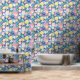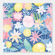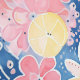 Een naadloos patroon met pastelkleurige citroenschijfjes en schattige bloemen op een lichtblauwe achtergrond. Het ontwerp combineert zachte, verfrissende tinten met charmante bloemenelementen, waardoor een grillig en vrolijk visueel effect ontstaat.