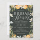 Citrus, oranje + lossom vrijgezellenfeest partijuitnodiging. Mooie waterverf, vruchten- en bloemtekeningen. Partij van een collectie.
