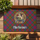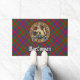 Clan MacGowan crest badge omringd door een riem en gesp over tartan achtergrond. Eigen Tekst.