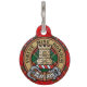 Clan MacLean kuif badge omgeven door een riem en gesp over tartan achtergrond. Aangepaste tekst aan beide zijden.
