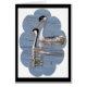 Clarks' Grebes zwemmen samen, op een ovaal ontworpen kaart, met zwarte grens.