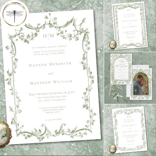 Classic Elegant Sage Green Floral Frame WeddingOntworpen door Kathe Santillo