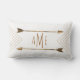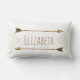Golden metal-vormend pijlvormig ontwerp met het accentueren van zijpijlen over wit met uw gepersonaliseerde volledige naam op de voorzijde en monogram letters op de achterzijde. Deze kussen zijn boho chic en klassiek.