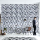 Monochroom dakpatroon met wilde bosdieren - beer, herten, wolf, haas en bomen voor een stijlvolle kinderkamer, slaapkamer van de kinderen