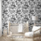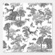 Monochroom dakpatroon met wilde bosdieren - vos, herten, haas en bomen voor een stijlvolle kinderkamer, kinderen kamer, slaapkamer