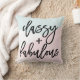 Modern kussen met wit, blush en lichtblauw patroon en borstel typografie. Een perfect accent voor elke ruimte. Andere kleuren beschikbaar. Klassiek en fantastisch!