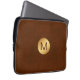 Classy Faux Brown Leather & Gold Initiaal Naam Laptop Sleeve