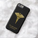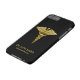 Professioneel elegant bedrijfsontwerp voor medische doeleinden: Edeloos goud Caduceus symbool op een zwarte achtergrond. Ideaal voor elke zakelijke relatie met gezondheidszorg, zoals een medische kantoor, een kantoor, een kliniek of een ziekenhuis. voor ziekenhuispersoneel, artsen, verpleegkundigen; klasse, edelmoedig en elegant.