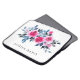 Moderne en stijlvolle laptophoes met helder roze waterverf rozen, blauw en grijs foliage op een witte achtergrond. De tekst kan worden veranderd.