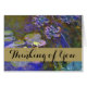 Claude Monet's Water Lilies en Agapanthus - Claude Monet's Water Lilies en Agapanthus is een prachtig impressionistisch schilderij van een van de meesterbloemkunstenaars aller tijden. De watertuin leeft van kleur en emotie, omdat de paarse Agapanthus uit de blauwe en groene stengels omhoog stromen. Het water leeft met wervelingen van bruin, groen en paarse. De waterlelies zijn een impressie — het is niet de bedoeling dat ze een exacte replica zijn van een echte waterlelie. De lelies zijn groen en paarse, en er staan twee gele bloemen op. De vloedgolf aan kleuren is inspirerend. Claude Monet was een van de grote waterlelieschilders - misschien wel de grootste kunstenaar aller tijden. Hij schilderde zeker veel waterlelies - maar dit schilderij is heel anders, omdat het ook de agapanthus op de voorgrond toont.