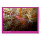 Een blanco cadeaukaart met een foto onder water van een schonere garnaal op een anemone