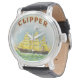 Clipper zeilschip is grafisch van  sigarendoos label op wijzerplaat.