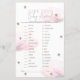 Deze elegante cloud 9/cloud nine "name that baby animal" baby shower spelkaart heeft een witte achtergrond met pluizige roze wolken in waterverf. Personaliseer het voor uw behoeften. U kunt bijpassende producten vinden in mijn winkel. ANTWOORDSLEUTEL: ZWAAN: L, GEIT: I, HAVIK: N, UIL: E, AAP: A, PAARD: O, KANGOEROE: G, ZWIJN: D, MUIS: J, GIRAFFE: C, HERT: M, KALKOEN: F, VARKEN: K, BEVER: H, MUG: B