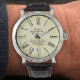 Communautaire arbeiderswacht. Een horloge voor de mannelijke aanvoerder van de club of de gemeenschapsambtenaar. Voeg de naam van de ontvanger en de club- of associatiedetails toe. Romeinse cijfers op een achtergrond van de stroomstijl.