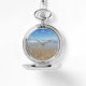 Dit zilveren zakhorloge heeft een prachtig uitzicht aan de kust van het strand in Soulac Sur Mer in Frankrijk. Kristalheldere kalme wateren en gouden zand brengen herinneringen terug aan een prachtige vakantie. Je kunt mijn foto vervangen door een van je eigen foto's als je dat wilt door op de personaliseringsknop te klikken.