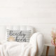 Het vete 'beachy keen'-script lumbar pillow met een elegant strandthema seashell en strepen.