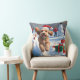 Cockapoo Rent in de Sneeuw met Kerstmuts Kussen