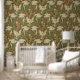 Cockatoo and Pomegranate in bamboo green Behang