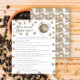 Waterverf koffiebonen en kopje koffie en bonen patroon. Koffie brouwen baby shower. Koffiethema met baby shower. Tekst met koffiering en met koffiebonen en kop koffie.