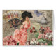 Een mooie Victoriaans vrouw schilderij in het roze met bloemen en een fan - deze grillige en prachtige sprookjescollage heeft met bloemen, een vlinder, een ventilator, koffie, en veel prachtige kleur!