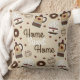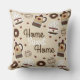 'Thuisvriendelijk startkussen' met een schattige, geïllustreerde koffiekopje en een bijpassende koffiepot met hart en donuts. Chocoladebruin op de achterkant.