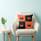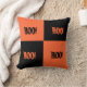 Halloween goot kussen in oranje/zwarte kleurenblokken met Boo! tekst. Pas dit object aan of koop zoals het is.