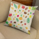 Deze gooiende kussen hebben een kleurrijk patroon met herfstbladeren, bessen, pompoenen, zuren en kastanjes op een beige achtergrond.