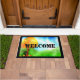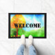 Colorful Autumn Welcome Deuren Mat met Green Grass, Blue sky en Maple Tree