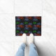 Deze aantrekkelijke deurmatten vertonen een helder patroon van kleurrijke fietsen op een dramatische zwarte achtergrond. De kleuren van de bike omvatten rood, blauw, groen, en paars. Dit onderscheidende patroon is geweldig voor elke fietser!